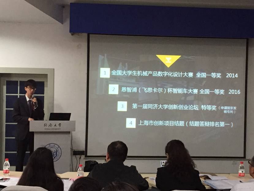 4月17日下午,“同济大学追求卓越学生奖”本科生组初评答辩在四平校区瑞安楼二楼报告厅举行,我院本科生熊之遥(2013级机械设计制造及其自动化专业)、曾大鹏(2013级莱茵班)作为候选人参加答辩。