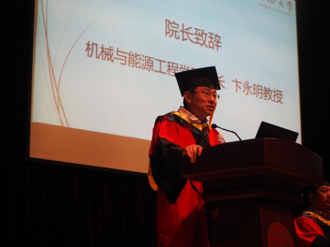 院长卞永明随后代表学院致辞,他希望毕业生们保持健康的身心、保持自己的初心、保持进取的态度、保持奉献的精神,在将开始的人生新篇章中,努力创造更大的成绩。