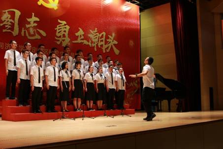 6月22日下午3点,大雨瓢泼,济人楼里热情洋溢,来自嘉定校区7个学院的党员济济一堂参与学校研究生党员合唱比赛。我院研究生党总支合唱队28名同志昂首挺胸迈步踏上舞台,指挥吴世锋自信坚定步入舞台中央。演出首先由师生朗诵拉开序幕。