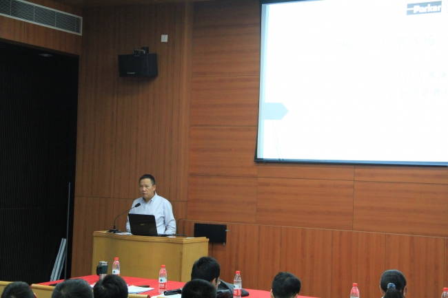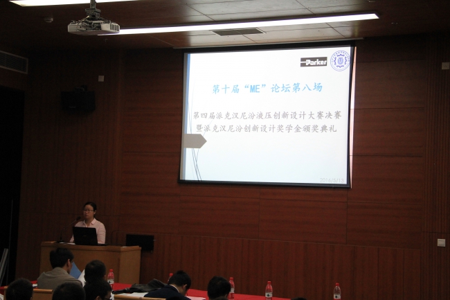5月13日下午,同济大学第四届派克汉尼汾液压创新设计大赛决赛暨派克汉尼汾创新设计奖学金颁奖典礼在我院A101报告厅成功举行。派克汉尼汾工业液压技术有限公司总经理陆慧彬先生、业务开发主管王战先生、设计工程师刘建涛先生、大中华区招聘经理张祎达女士,我院朱玉田教授、吴仁智副教授、党委副书记李红等出席了本次活动。李红老师、陆慧彬先生分别为大赛致辞。