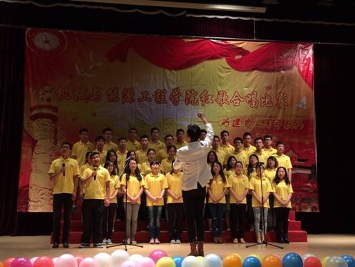 庆祝党的94华诞,开展社会主义核心价值观教育,6月16日下午,“为建党94周年献礼”红歌合唱比赛在嘉定校区济人楼101举行。活动由校研究生党委工作部、机械与能源工程学院党委主办,研究生14级机械二支部承办。参赛选手主要为学生党员和入党积极分子,有一支博士生团队、五支硕士生团队,两支本科生团队参加了此次合唱比赛。学院教工合唱团也参与到此次活动中,为学生党员起到了表率和示范作用。