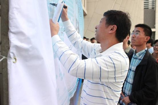 会后,参加本次仪式的嘉宾及老师同学聚在写有每人名字的签名墙前合影留念,象征着同济大学和英国机械工程师学会的合作伙伴关系将良好地长久地发展下去。