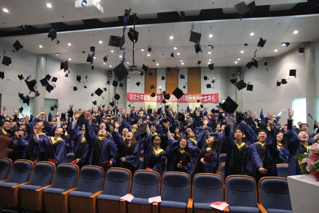 在全体与会学生、老师和嘉宾《歌唱祖国》的嘹亮歌声中,全体毕业生将学位帽高高抛向空中,机械与能源工程学院2015届研究生毕业典礼成功落幕。