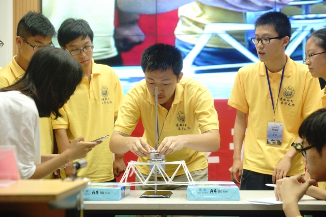 本届夏令营实践作品制作采用“吸管搭桥”竞赛,竞赛由我院职业发展协会组织,营员们以小组为单位完成吸管搭桥并承重的任务。在为期三天的夏令营过程中,为了争取更好的成绩,各小组成员竞相发挥自己的聪明智慧,热烈讨论,精益求精,不断完善作品。闭幕式上,十一个小组按照抽签顺序依次展示自己的作品,并接受承重考验。“吸管搭桥”竞赛一方面锻炼了营员们运用知识的能力和动手实践的能力,另一方面也培养了学生的创新能力与团队合作的能力。最终,第四组获得一等奖,第五、六、七组获得二等奖,第三、十组获得三等奖。土木工程学院卢文胜教授点评了各小组作品,并给与了高度评价。