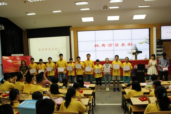 最后,出席闭幕式的嘉宾向各位营员颁发营员证书,并以此表彰了获得“吸管搭桥”竞赛一、二、三等奖的小组与获得“优秀营员”学生,我院2013级本科生陈煜文作为志愿者代表发言。至此,2014年同济大学“意趣相引、乐学无限”高中生暑期夏令营圆满结束。