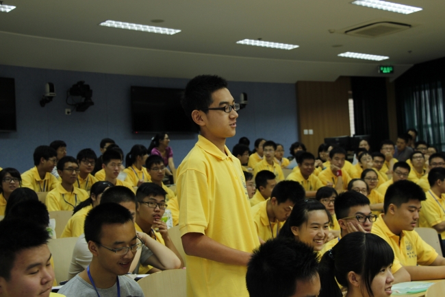 开幕式上,我校招生办公室主任廖宗廷教授与营员们进行了深入交流。营员们就同济大学卓越人才培养计划、人文学科的发展情况、大学教育与中学教育的不同等问题踊跃提问,廖宗廷教授用幽默风趣的语言一一解答。廖宗廷教授详细介绍了同济的教育方式、培养计划、对外交流、专业建设等内容,并再次寄语营员们注重兴趣的重要性,以谦逊认真、刻苦踏实的态度学习。
