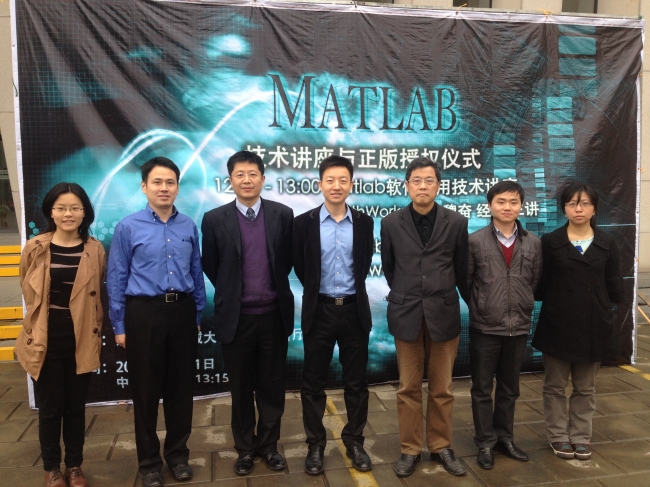 4月21日中午,Matlab技术讲座与正版授权介绍会在开物馆A101报告厅成功举办,Mathworks公司魏奋经理、陈炜博士,学院常务副院长李理光教授,专业基础教学部主任奚鹰教授、卜王辉博士、李梦如博士及学院各系所教授、老师出席介绍会。