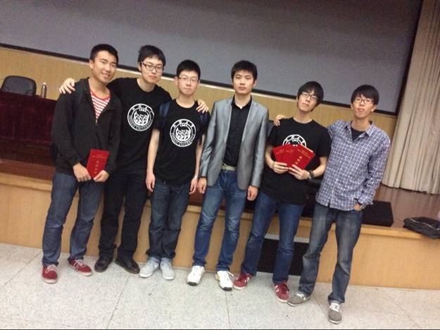 带队老师陈哲(右三)与参赛学生在华中科技大学机械学院比赛现场合影
