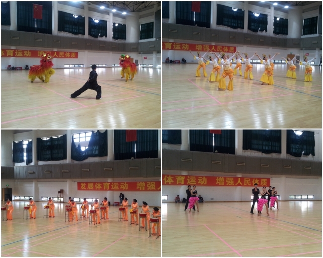 校学生舞狮队、老年人艺术团、学生拉丁舞队等为大家献上了精彩纷呈的开幕式表演。随后,离退休老同志们踊跃参与到飞镖、小圈套准、篮下投篮、夹弹珠、掼结子、足球射门、乒乓板托球障碍赛等比赛项目中,尽情享受运动与比赛带来的乐趣。