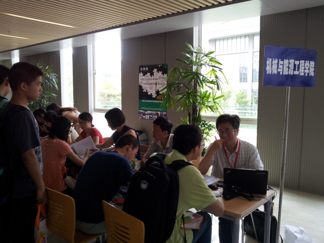 8月31日,我院共有338名本科新生来到四平路校区综合楼报到注册。学院分别在综合楼1楼大厅与6楼学院综合办公室设立了报到接待处。在指示牌的引导下,新生先至一楼大厅的班主任接待处报到,再至6楼机械与能源工程学院综合办公室办理领取学费收据、注册登记、档案及组织关系移交等手续。因新生人数众多,楼上楼下两个接待点的设置有效实现了“分流”效果,不但节省了新生们排队等候的时间,更给他们提供了一个提前与班主任“一对一”交流对话的机会,帮助他们进一步熟悉新环境、新集体。