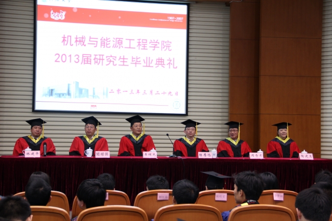 3月29日下午,风和日丽,机械与能源工程学院2013届研究生毕业典礼在嘉定校区同心楼224隆重举行。这是一个值得纪念的日子,这是一个值得庆祝的日子,校党委研究生工作部陆居怡部长,机械与能源工程学院相关领导、老师、部分学生家长和低年级学生,与全体2013届毕业生一起,共同见证了这难忘的时刻。