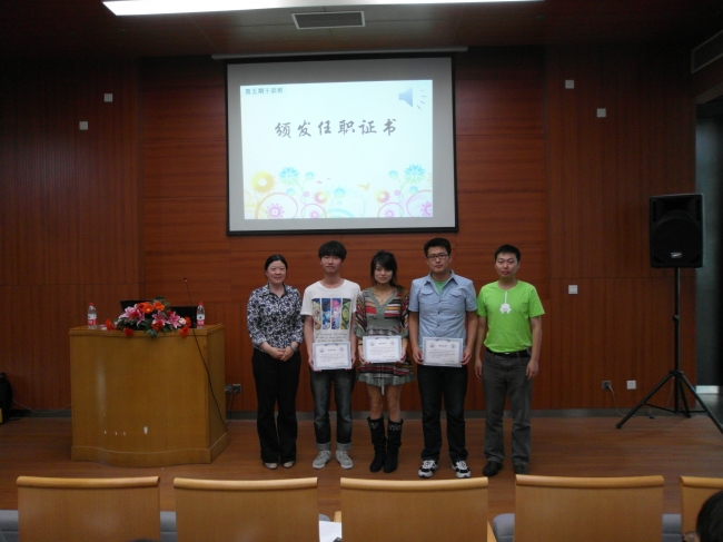 2012年5月29日13:30,机械与能源工程学院团委研究生会在机械大楼A101成功举办了第五期干训班2011/2012学年年度工作总结大会暨任职证书颁发仪式。院党委副书记陶建兰、团委书记高玉磊出席了本次干训班。同时,来自院研会各个部门的成员约30人参加了此次干训班。