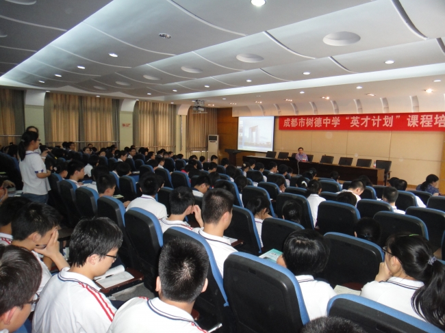 下图为许鹏教授与成都树德中学学生交流