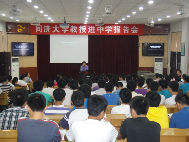 2012年6月12、13日,我院许鹏教授受我校四川省招生小组邀请,至四川省南充及成都市举行“同济大学教授进中学报告会”活动。许鹏教授为南充高级中学、成都七中、成都树德中学的高一、高二学生做了题为《建筑能源与环境——同济大学-卓越工程师的摇篮》的专业学术报告会。