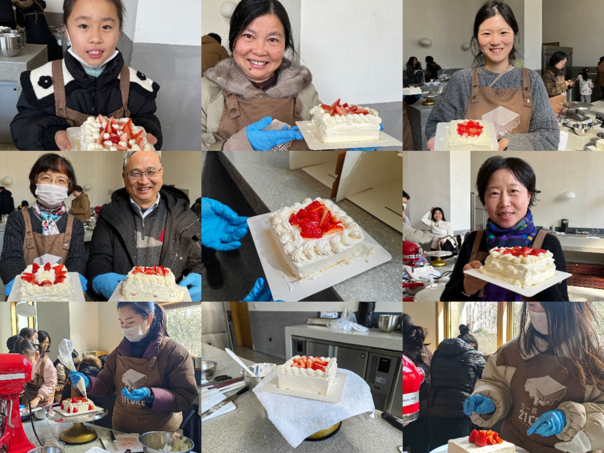 而后在烘培老师的指导下,大家纷纷开始动手DIY,充分运用所学,创作了属于自己独一无二的草莓蛋糕。蛋糕制作完成后,大家脸上都洋溢着甜蜜幸福的笑容。