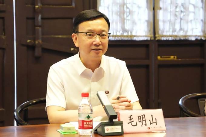 参观完后,双方在拥有500年历史的项家书院进行了座谈交流。毛明山对石振明副校长一行的到来表示热烈欢迎,详细介绍了重庆一中的办学传统、教学理念、学生综合发展等情况,期待与同济大学携手并进,共话大中合作新篇章。
