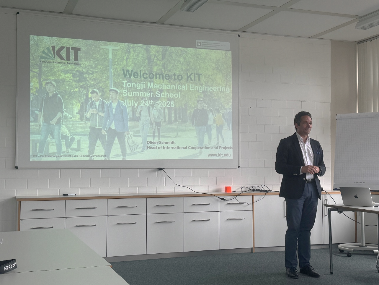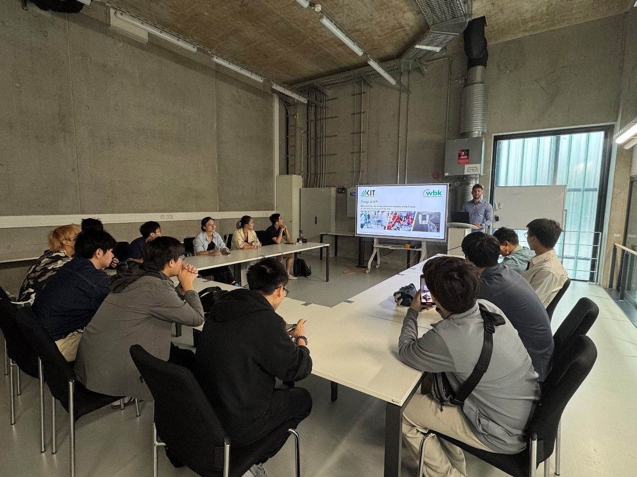7月24日至25日,暑期德国行团队师生访问德国精英理工大学卡尔斯鲁厄理工学院(KIT)。KIT外事办公室Oliver Schmidt介绍了KIT的建校历史、地理位置等,欢迎来自中国特别是同济大学的同学到KIT交流深造,外事办公室学生助理Yanting Liu分享KIT学习生活、课余活动。