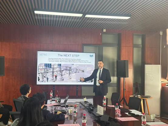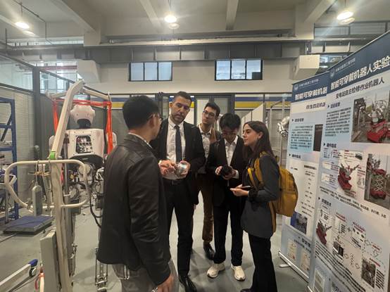 在交流环节,双方分别介绍各自学院、学校及研究所、大模型驱动外骨骼相关领域科研情况,计划在科研项目、青年教师交流、德籍兼职教授引进方面重点展开合作。Lorenzo Masia教授所在的慕尼黑机器人与机器智能研究所,是慕尼黑工业大学顶尖研究机构,以“具身智能”为理论核心,聚焦机器人动态控制、机器智能学习、人机交互等领域,在机器智能基础突破与行业落地均有显著产出。他对双方合作寄于厚望,以此次访问为契机,逐步推进机器人领域各层次中德合作。