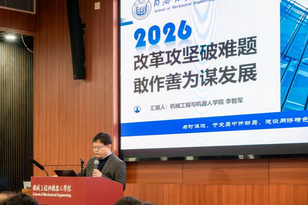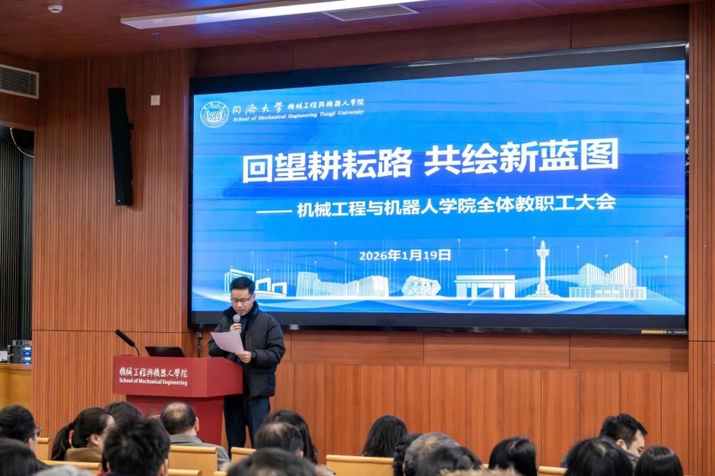 为系统总结过去一年工作,科学谋划学院重组后的发展蓝图,我院于2026年1月19日召开全院教职工大会。机械工程与机器人学院党委书记谭武、院长李智军、党政领导班子其他成员及全体教职工出席会议。会议由副院长高军主持。