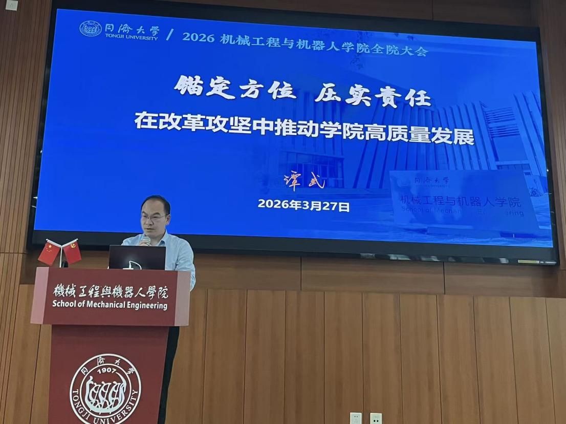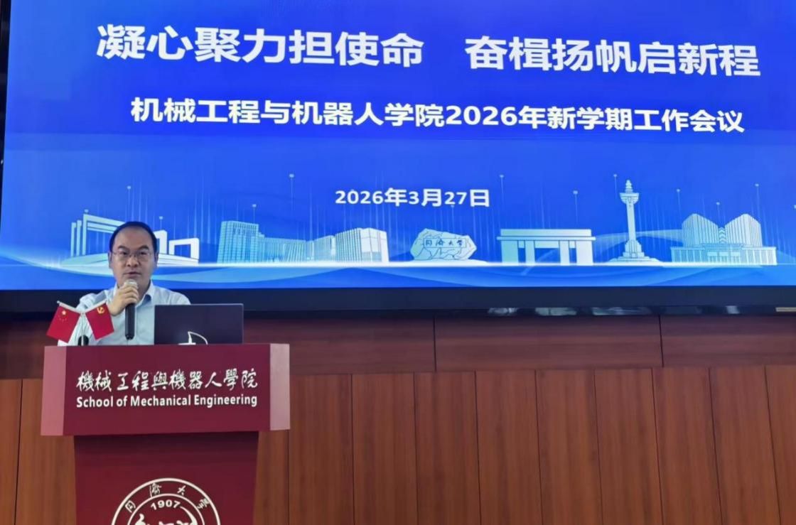 3月27日,机械工程与机器人学院召开2026年新学期工作会议,对标学校“十五五”规划及学院发展目标,全面部署年度重点工作。学院在家班子成员及全体教职工出席会议。会议由党委副书记刘谦主持。